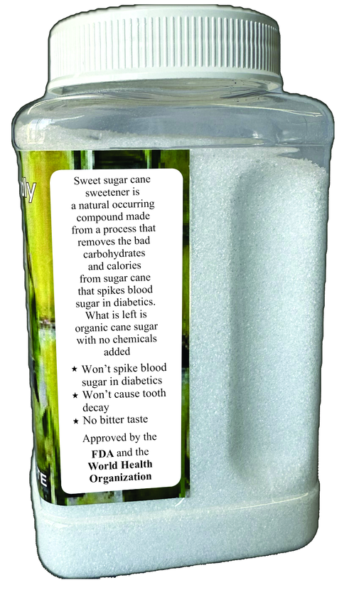 Sweet Sugar Cane Sweetener is a natural, organic cane sugar that has been carefully processed to remove the bad carbohydrates and calories that can spike blood sugar in diabetics.